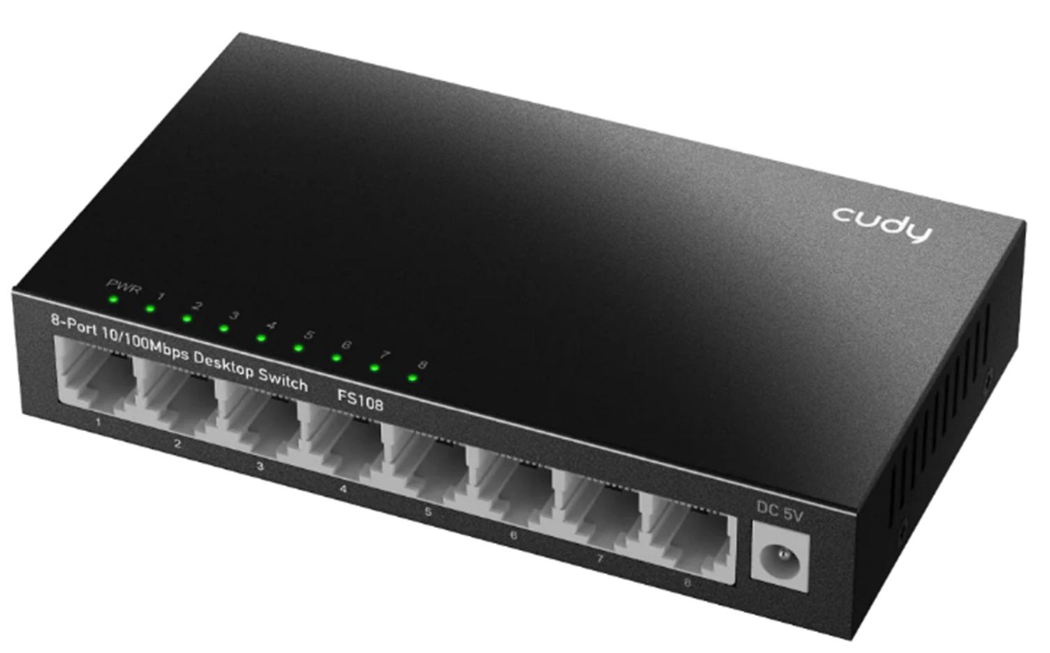 8-poorts 10/100 Mbps desktopswitch, 8 10/100M RJ45-poorten, metalen behuizing, energiebesparing, Plug & Play