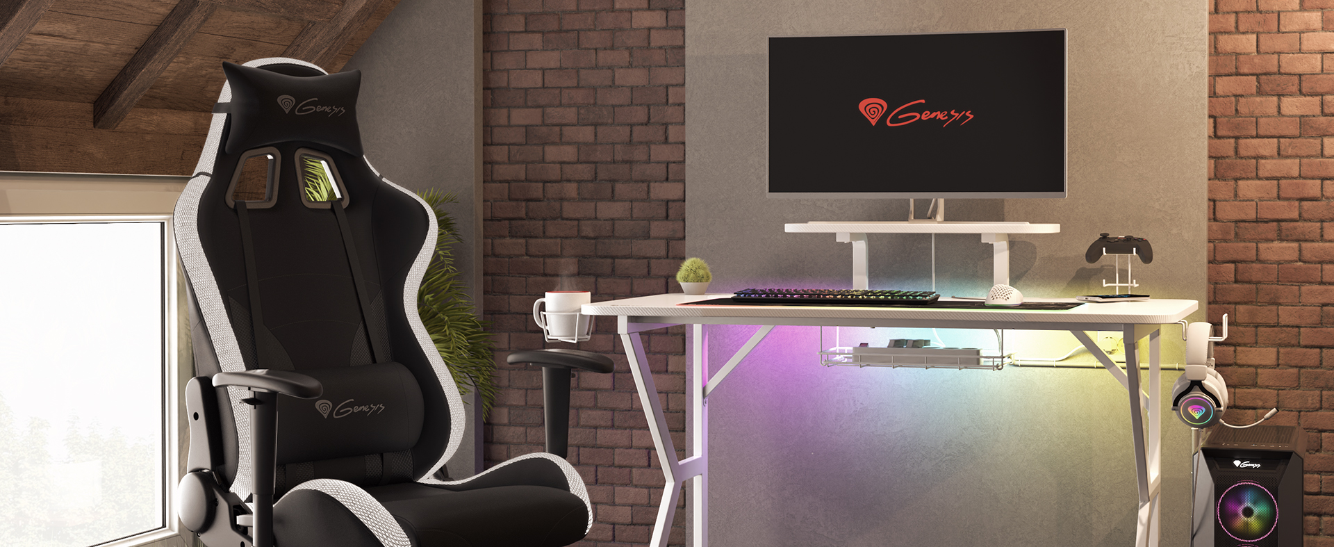 GAMING DESK GENESIS HOLM 320 RGB WHITE