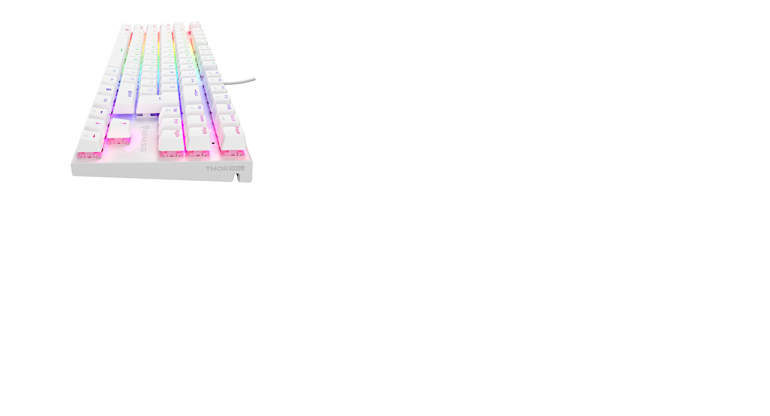 De Genesis Thor 303 TKL-sleutels hebben een levensduur van maximaal 50 miljoen klikken. Het toetsmechanisme, gecombineerd met de “Double Injection” techniek en solide aluminium behuizing, zorgen ervoor dat het toetsenbord jarenlang intact blijft. Je kunt ook rekenen op veel extra functies, zoals N-Key Rollover (volledige Anti-Ghosting), de mogelijkheid om de Windows-toetsen te vergrendelen en zelfs geavanceerde RGB Prismo Effect-lichteffecten.