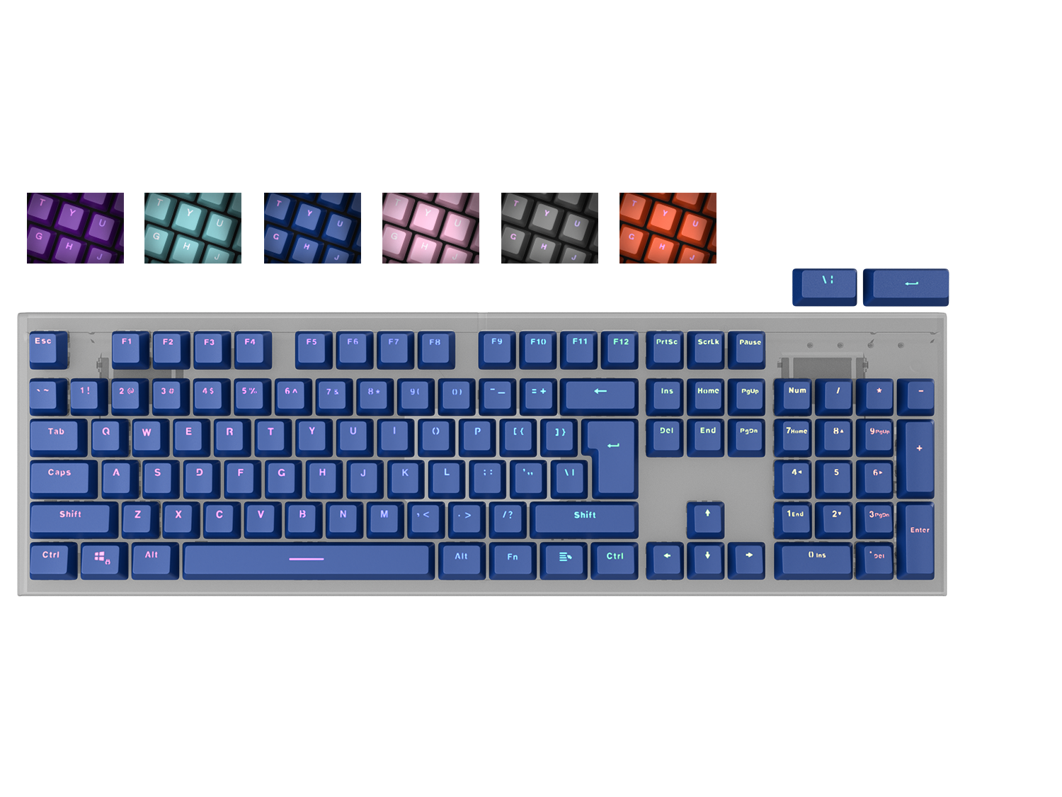 Kies je favoriete kleur uit maar liefst 6 kleuren. Mix ze samen en creëer een uniek toetsenbord dat alleen op je bureau verschijnt. Het is eenvoudig.