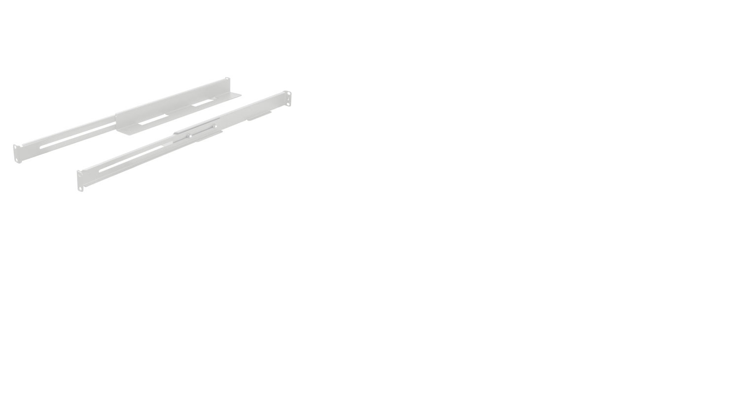 Verschuifbare rackrails van 397-680 mm, speciaal ontworpen voor het monteren van zware apparatuur in rackkasten, zorgen voor stevigheid en duurzaamheid. De hoogte van de rails is 1U, waardoor de ruimtebezetting wordt geminimaliseerd.